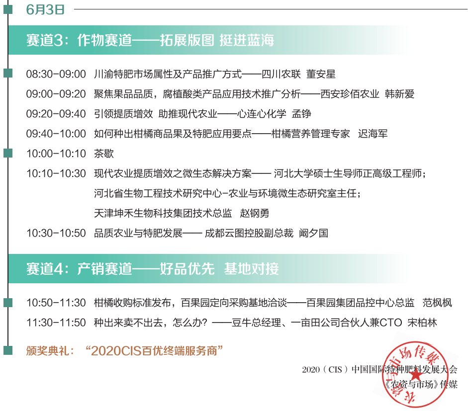 2020年6月1日,由农资行业权威媒体《农资与市场》传媒主办的“2020(CIS)中国国际特种肥料发展大会”将在四川成都火热开启。